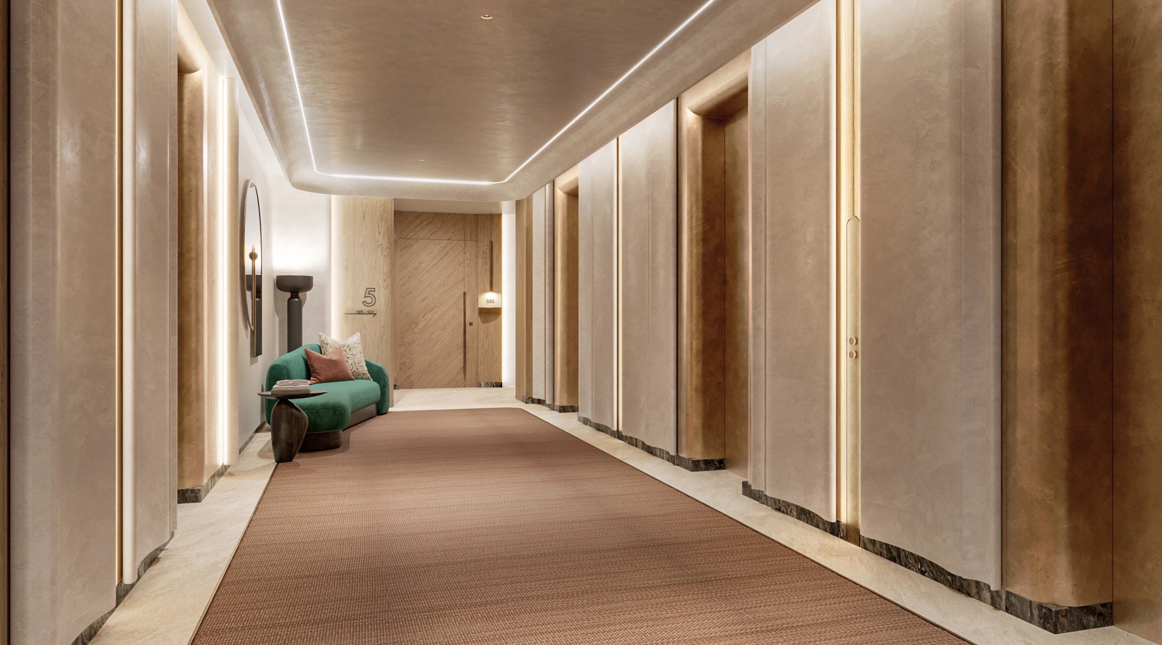 The interiors by LW Design exude modern elegance, featuring high ceilings, abundant natural light, and seamless indoor-outdoor living through private balconies.